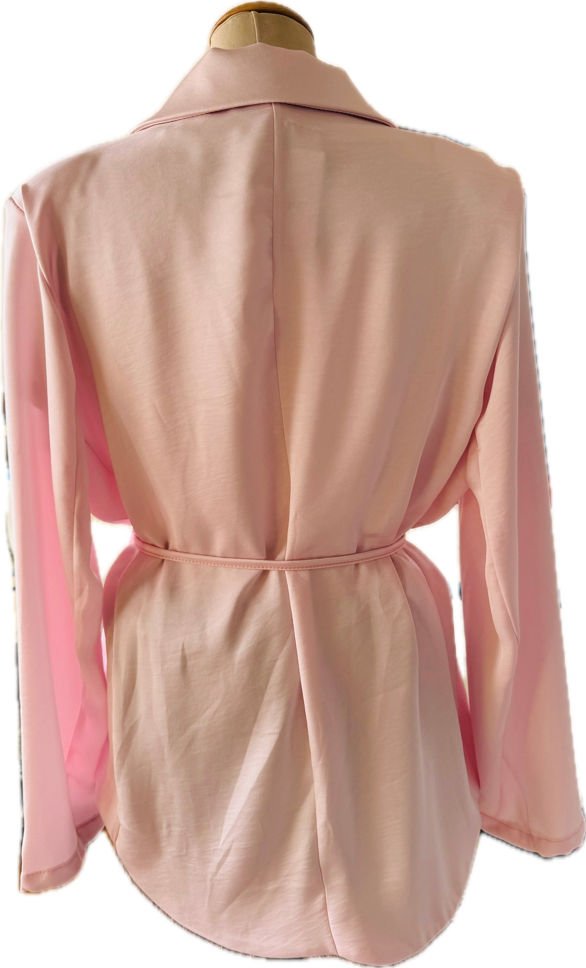 Rose, ungefüttert, leicht glänzend, gestretcht, mit schmalem Bindegürtel (kann aber auch ohne getragen werden), Onesize Gr 36 - Gr 40/42, Länge 72 cm und Brustweite 57 cm