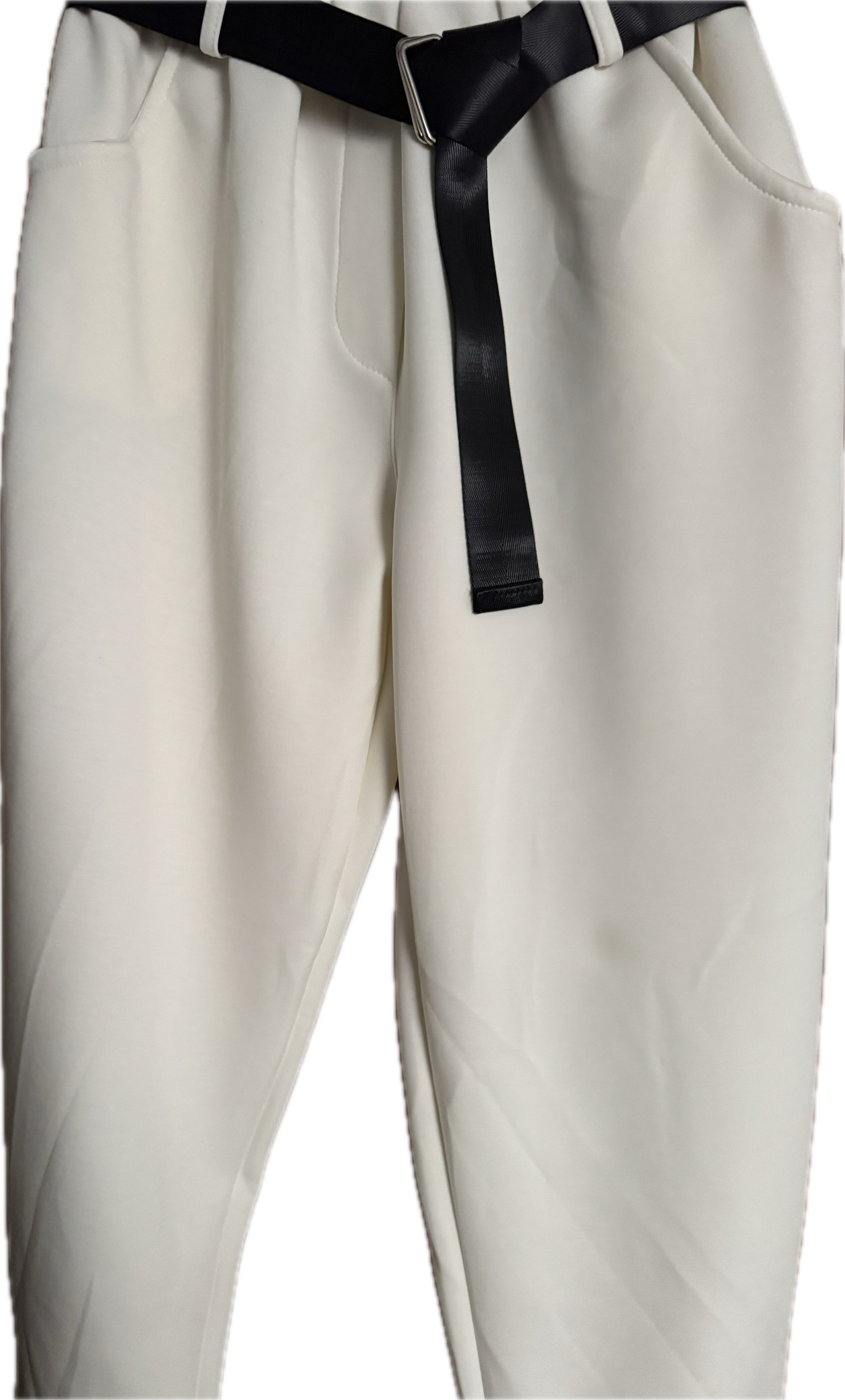 Chinohose mit Gürtel in cremeweiß, beige, braun und oliv