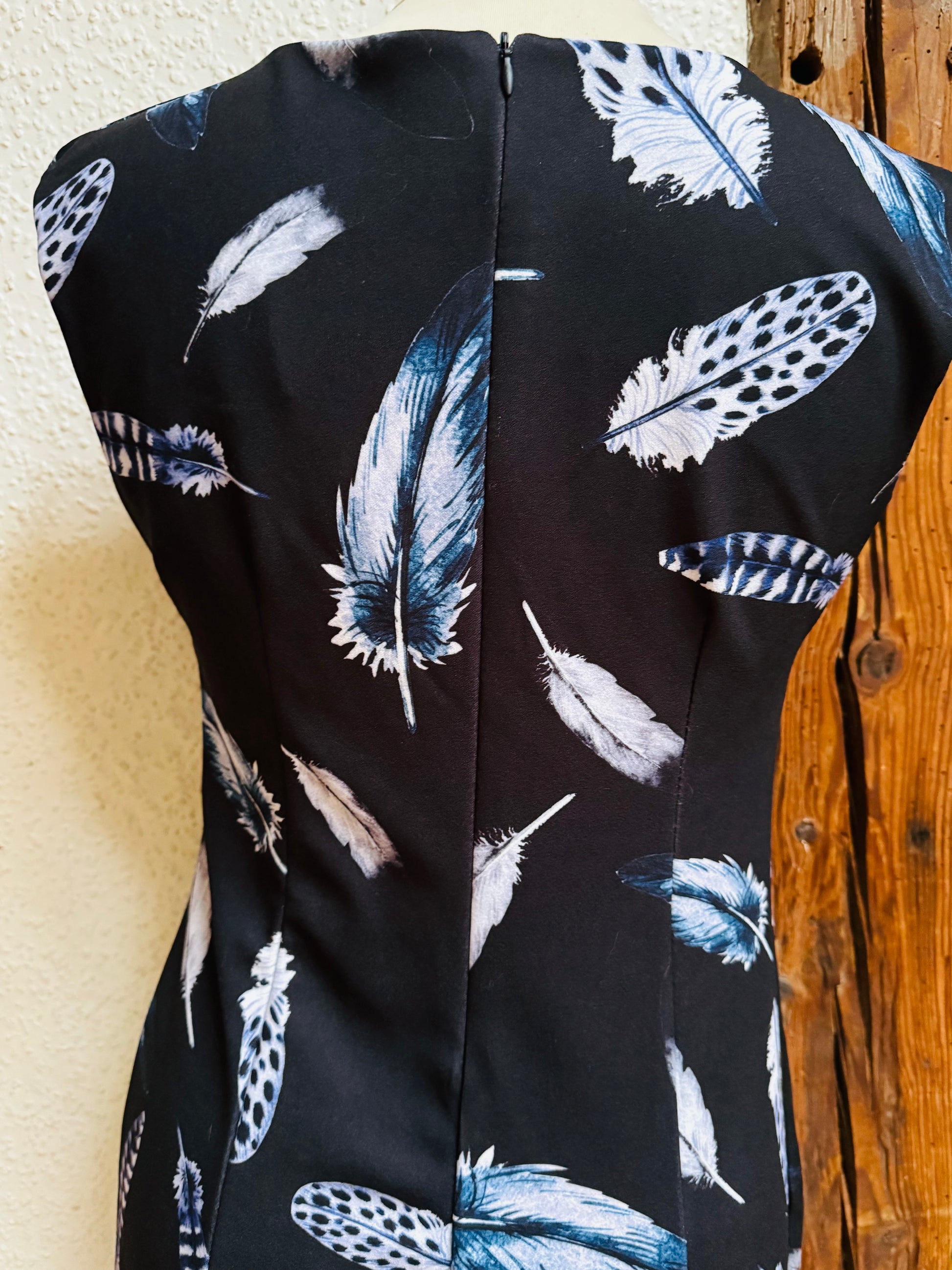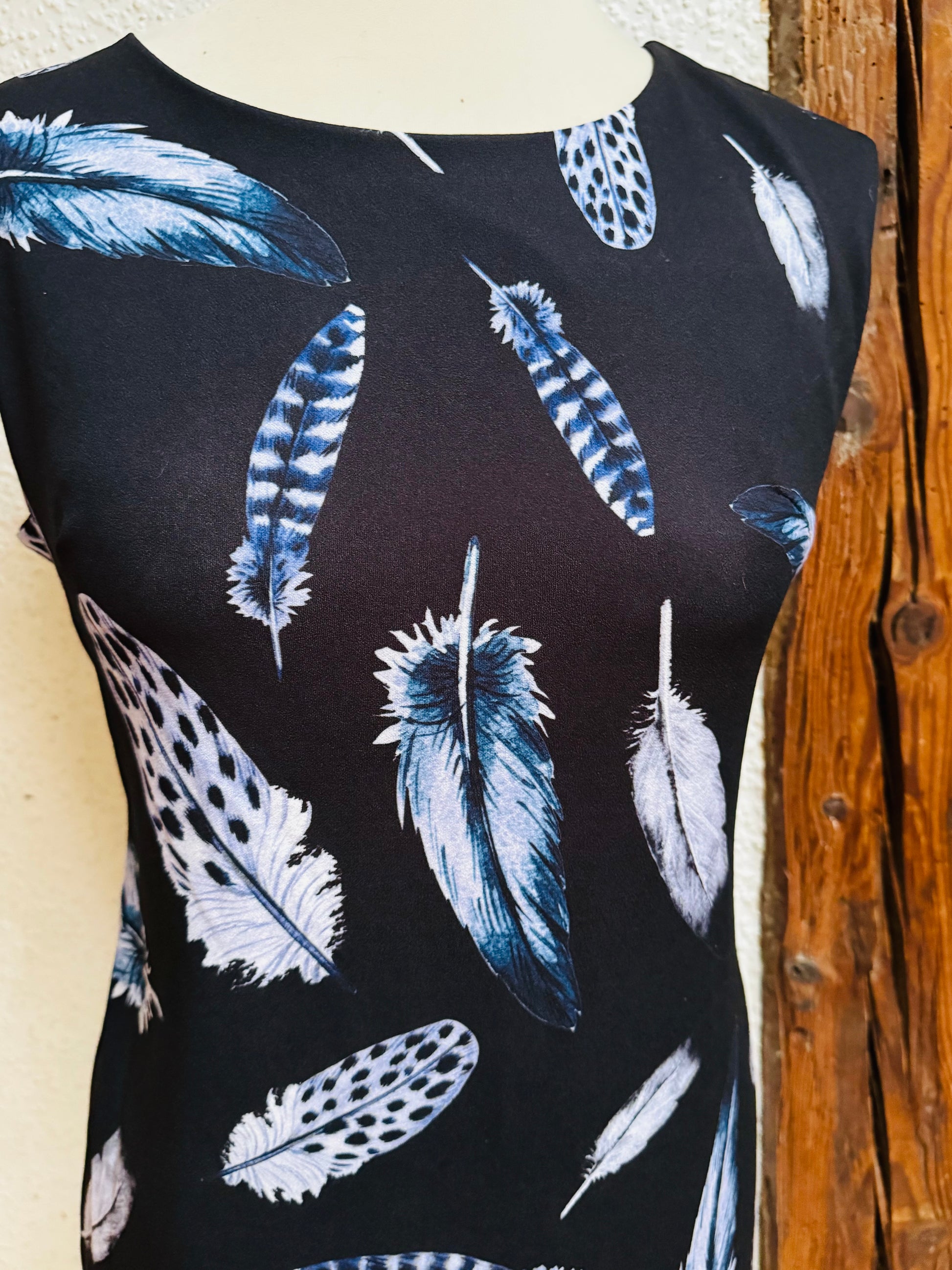 Etuikleid in dkl. marine mit Druck in Gr M und Gr L