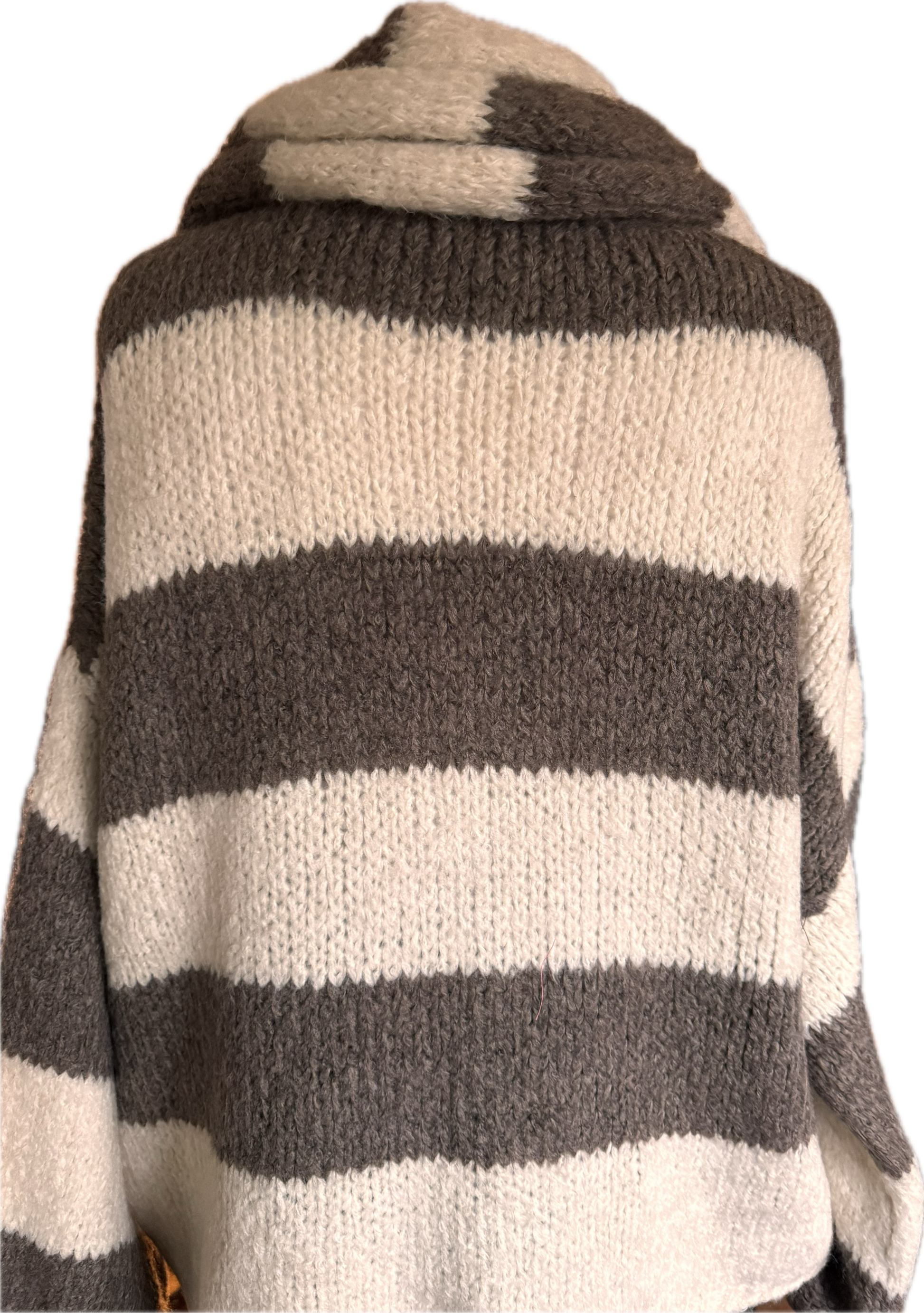 Gestreifte Stickjacke mit passendem Schal in creme und schoko