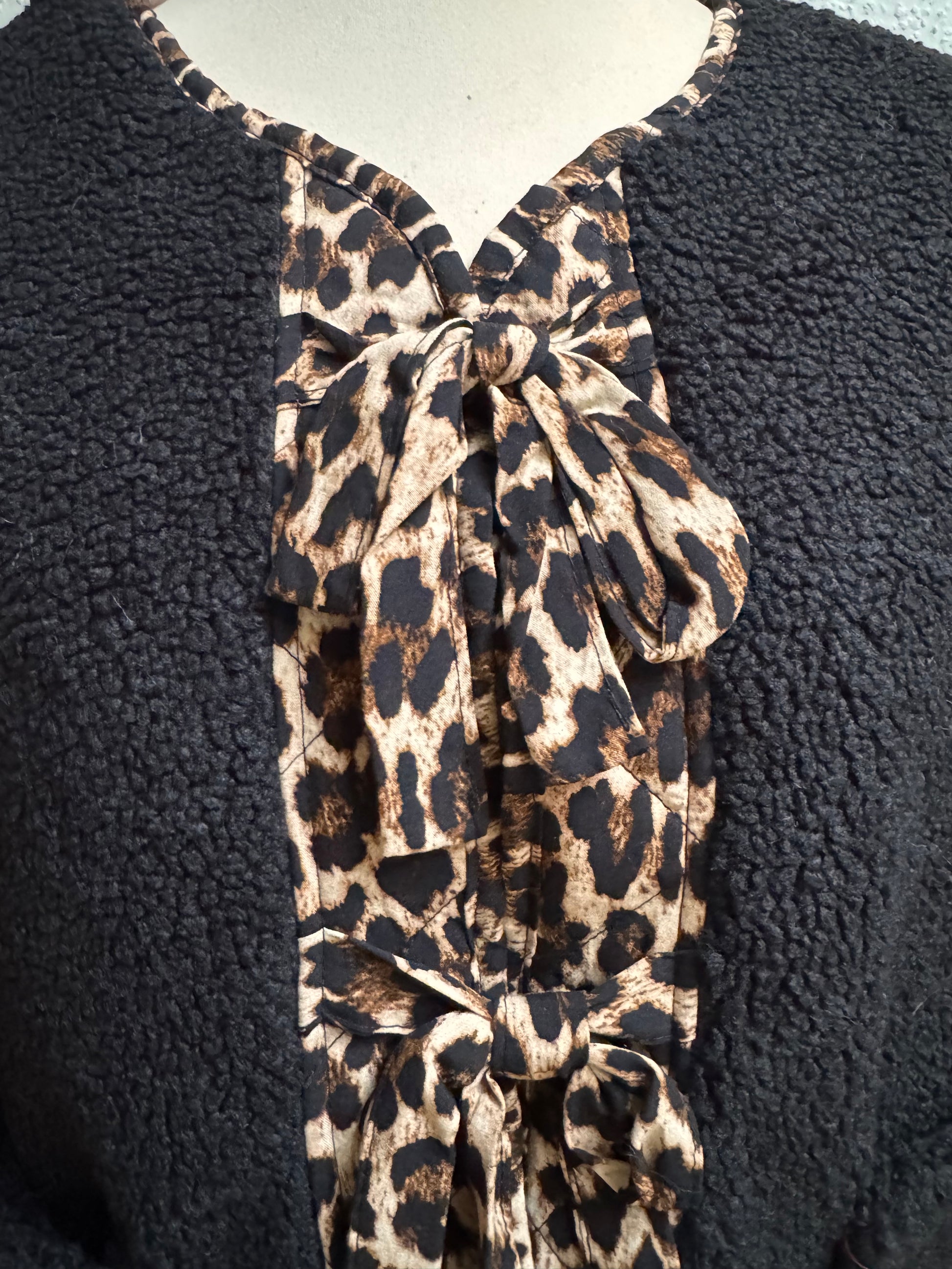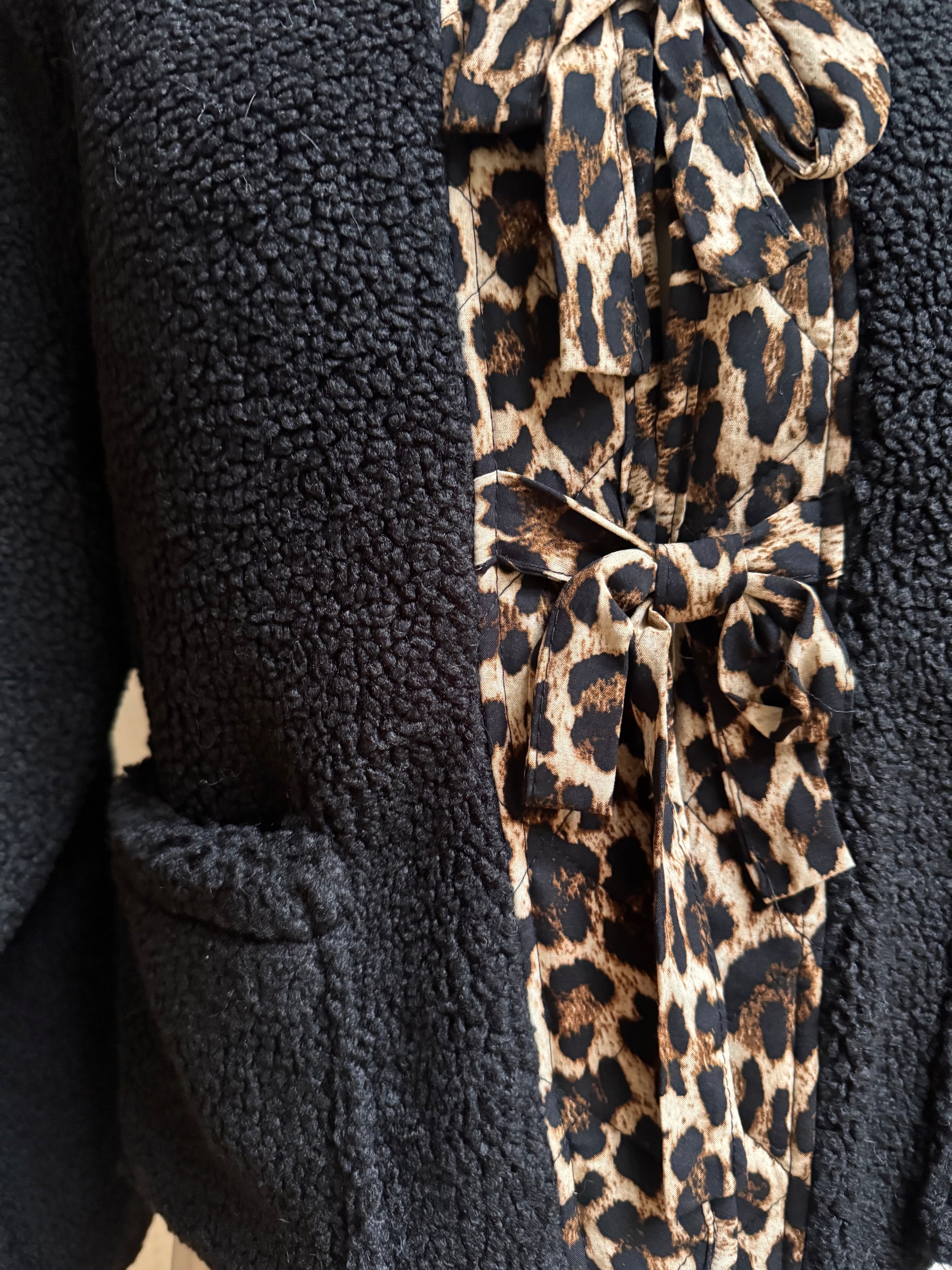 Schwarz mit Animalpaspellierungen und Animalbändern vorn zum binden, aufgesetzte Taschen, schön kuschelig, Onesize Gr 36 - Gr 42