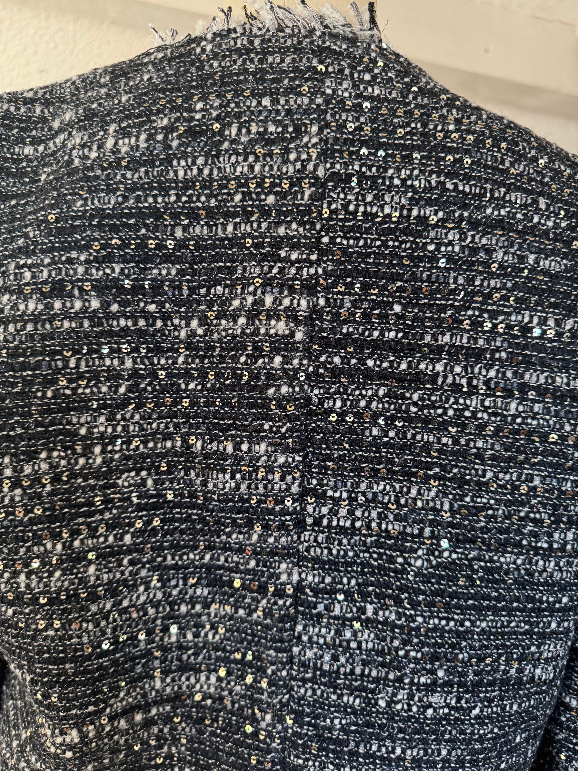 Kurze Fransenjacke mit Silberfaden und Pailletten