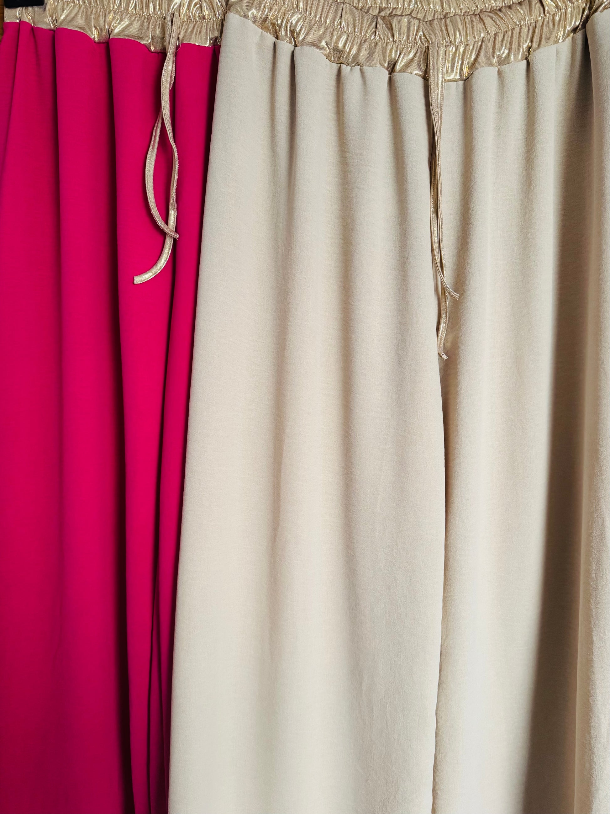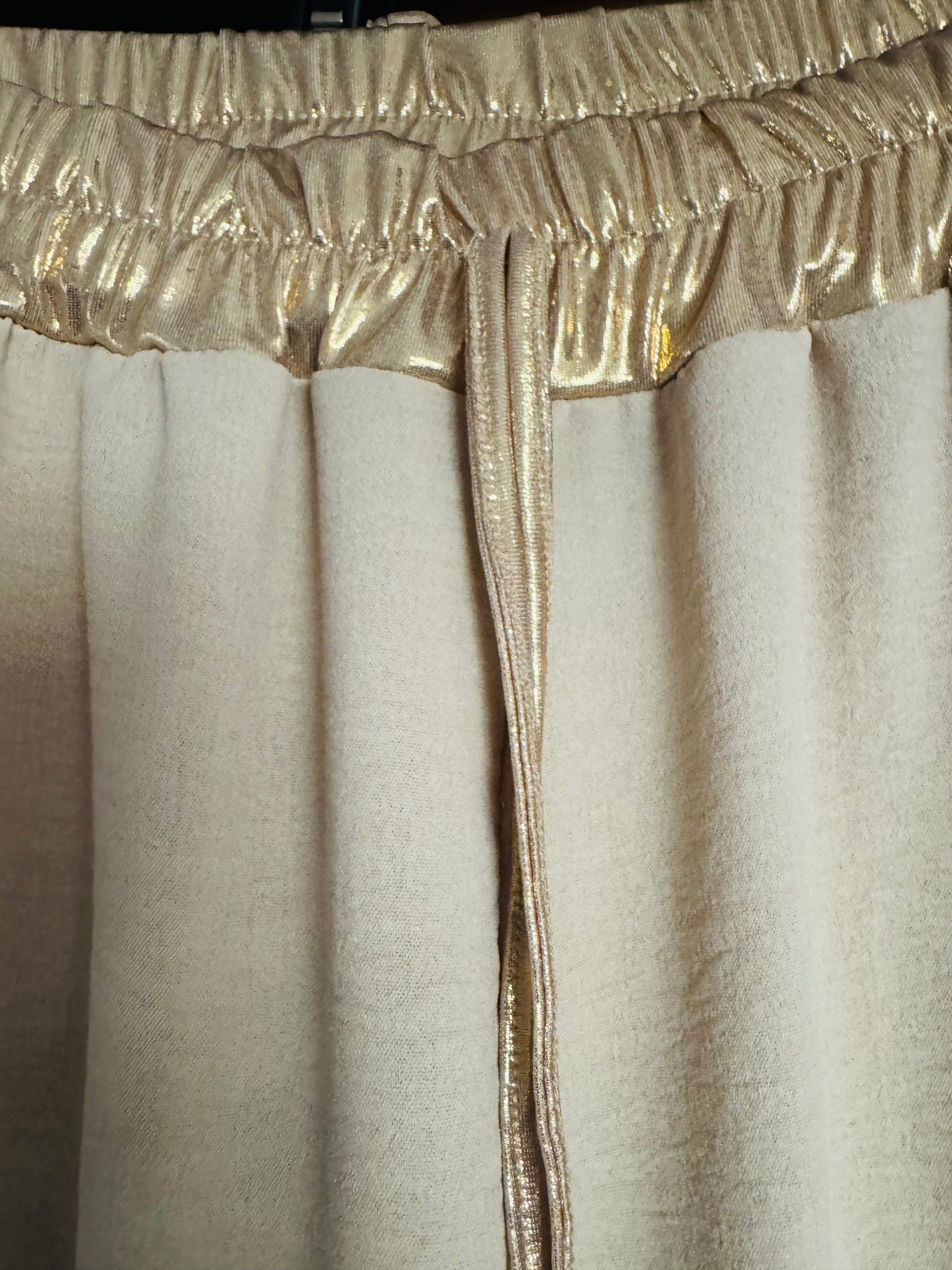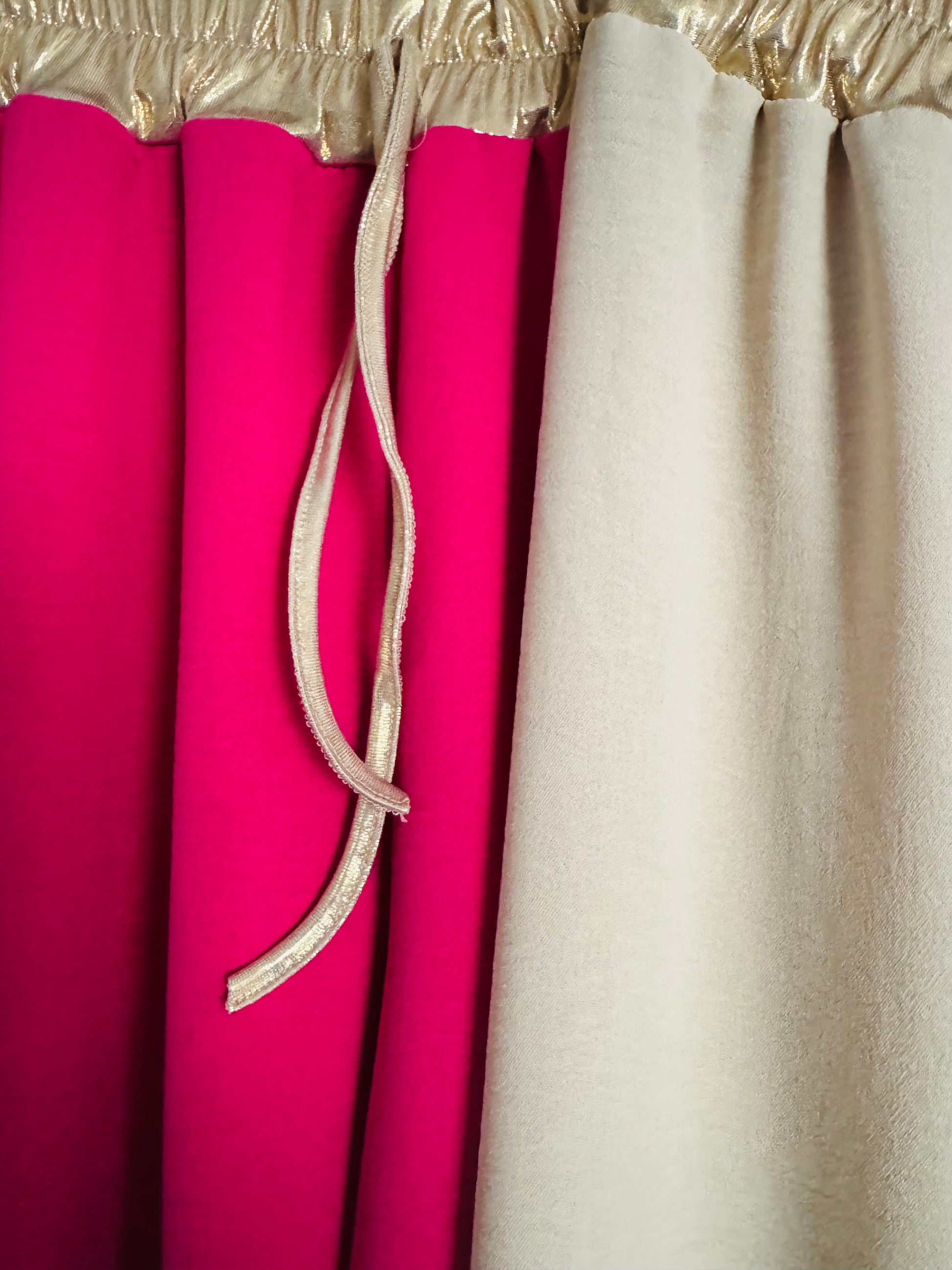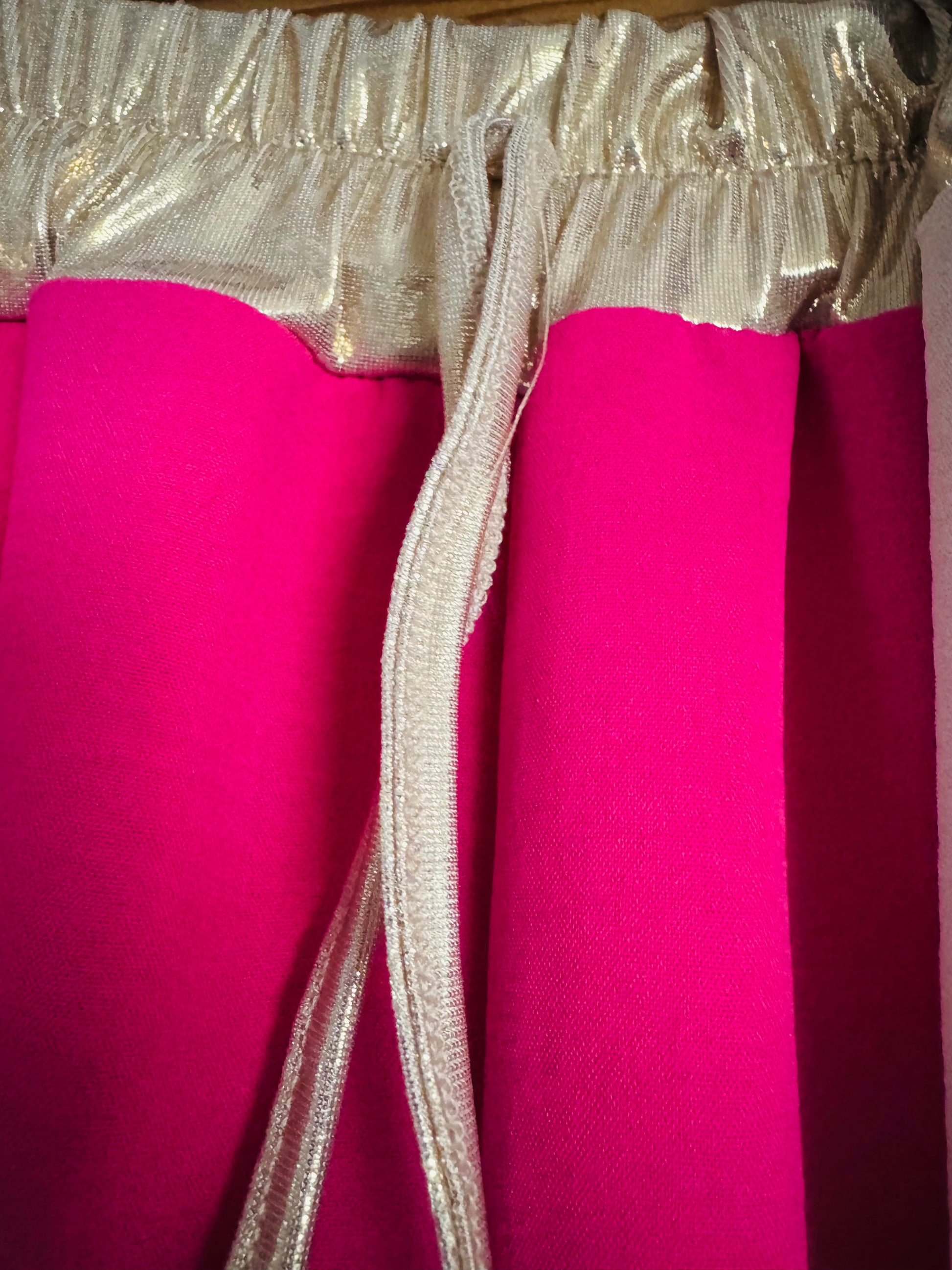- Hose, elastisches goldenes Bündchen mit Banddurchzug, in pink und beige,