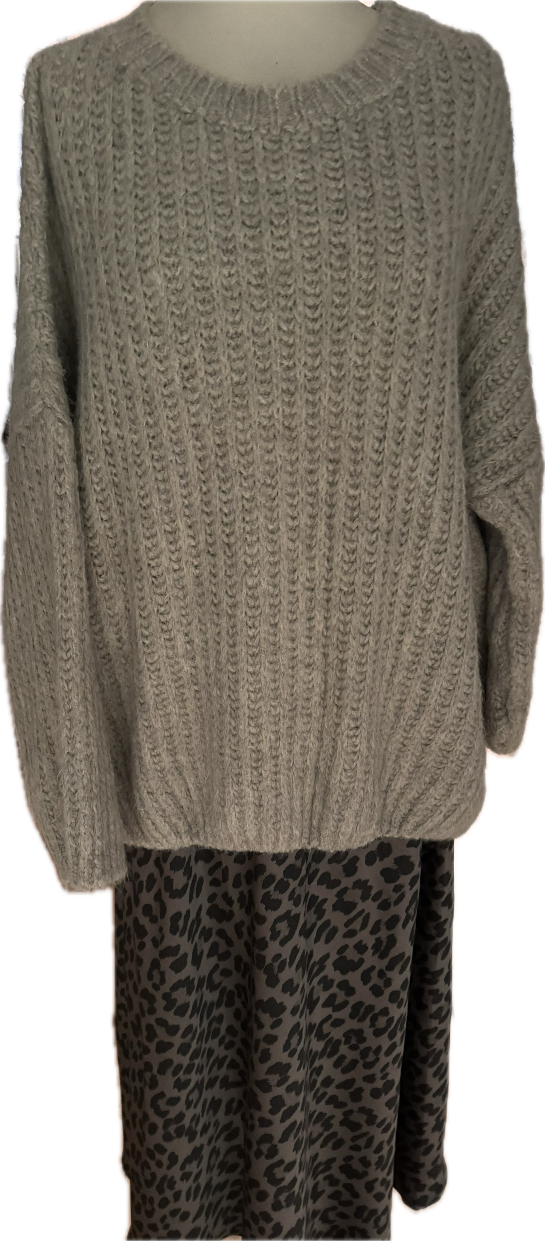 Schön oversized, Rundhals, überschnittene Schulter, ganz kuschelig und weich, Mischgewebe, Onesize Gr 36 - 42, Farben cream, dkl. braun und schoko
