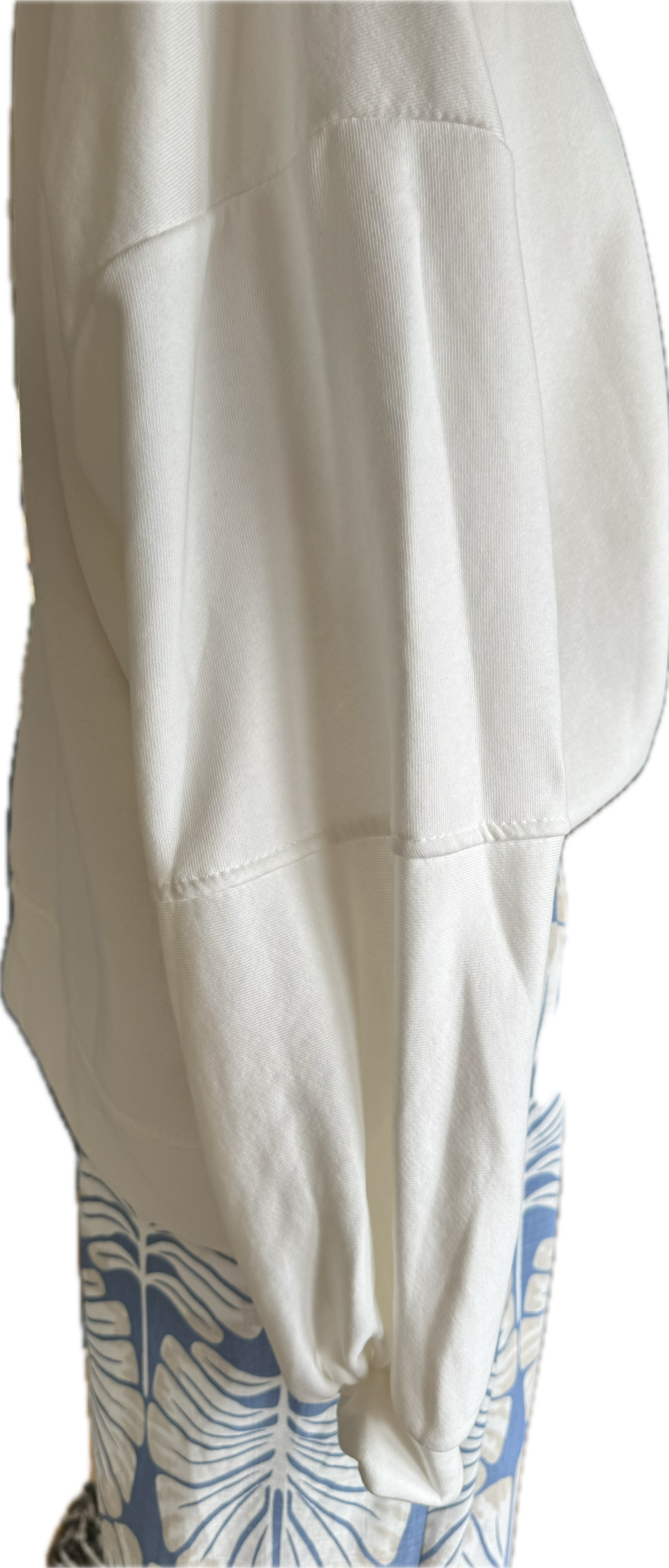 Oversized geschnitten, hinten etwas länger, überschnittene weit geschnittene Ärmel mit Bündchen, schöne Qualität 80% Baumwolle und 20% Polyester, Onesize Gr 36 - Gr 42
