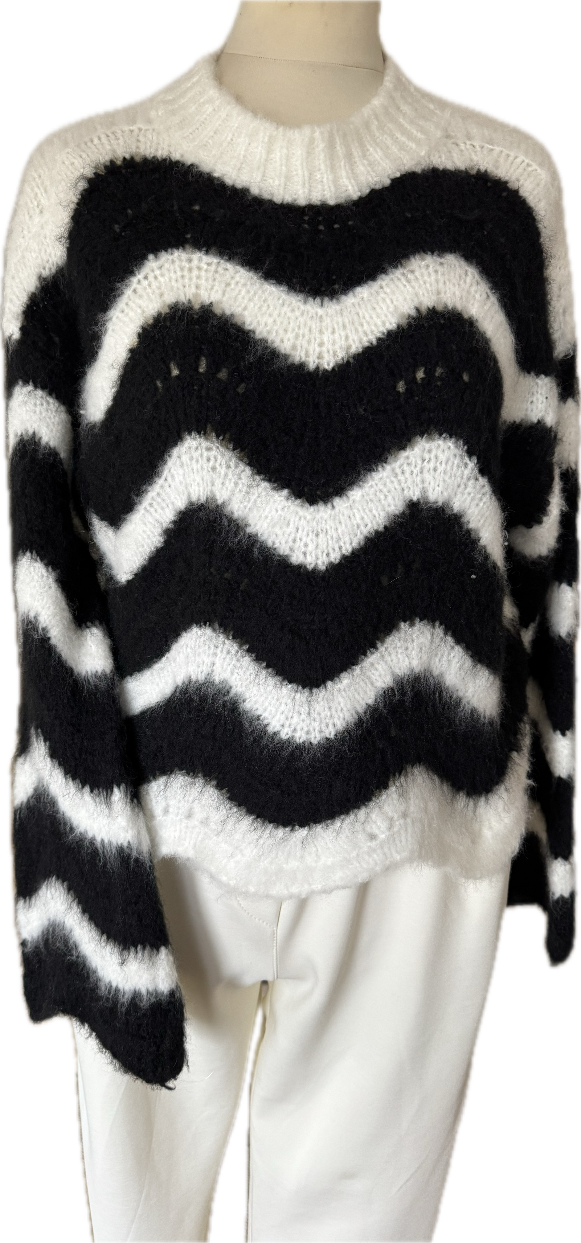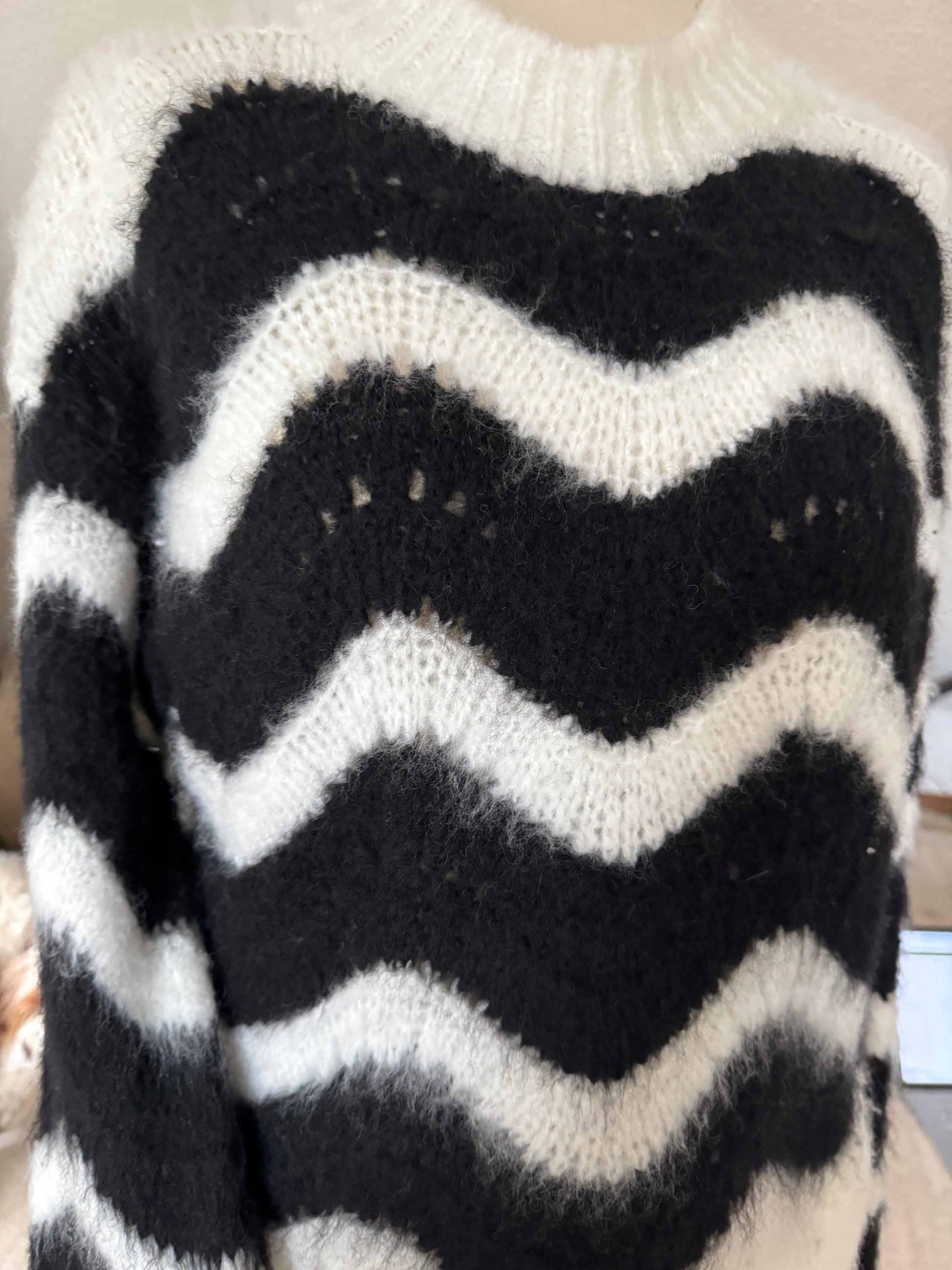 Pulli Streifen, wellenförmig, schwarz/weiß