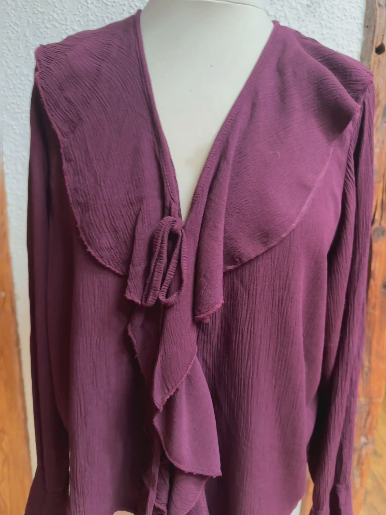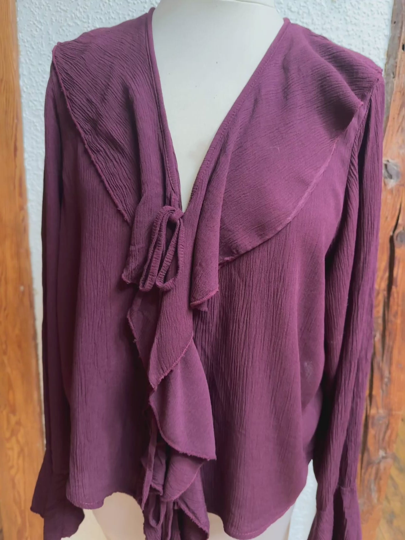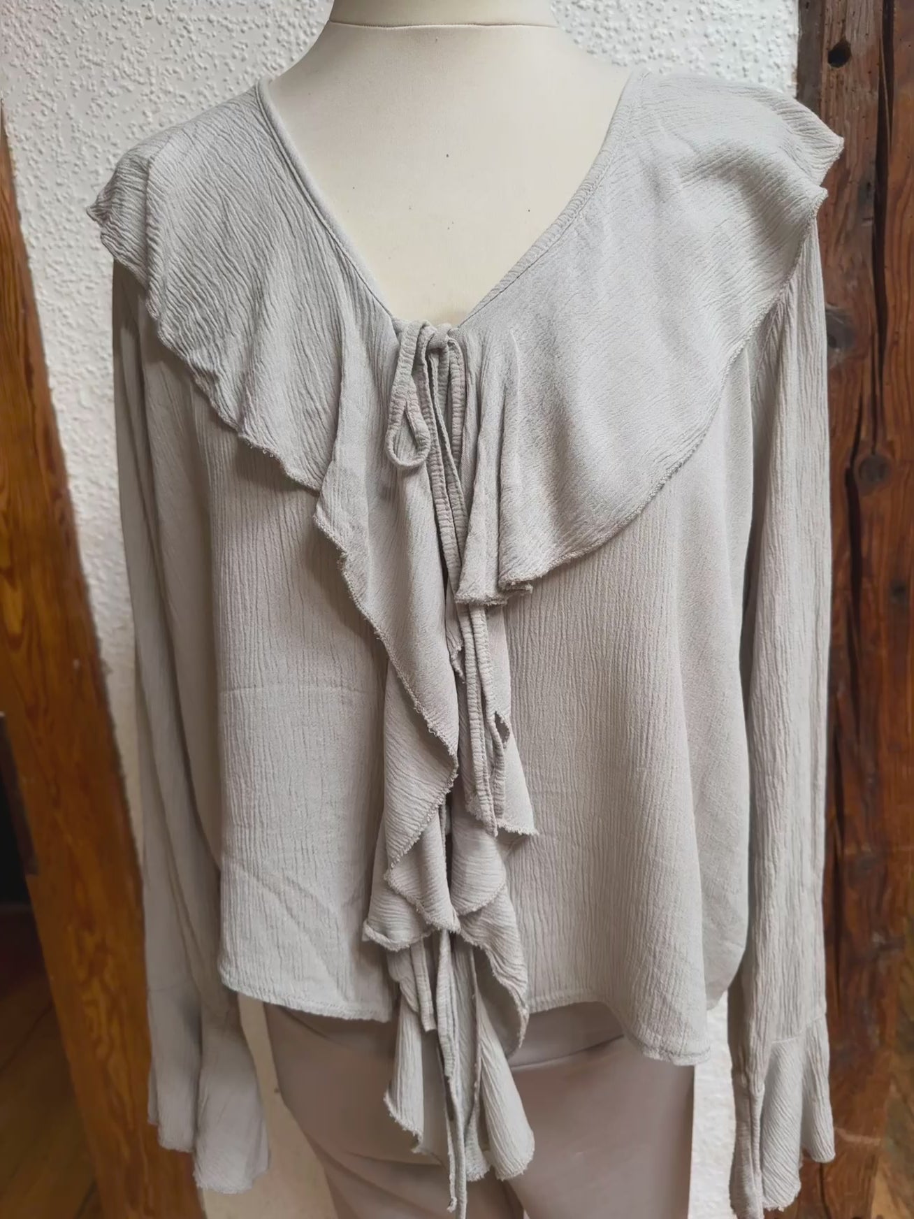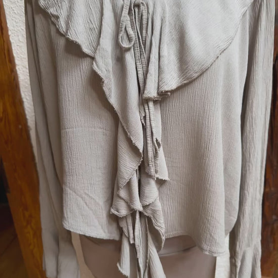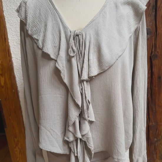 Super kombinierbar, vorne Rüschen, mit Bändern zum schließen, langer Ärmel, Material 100% Viscose, Onesize Gr 36 - Gr 40 Farben Beige und burgunder