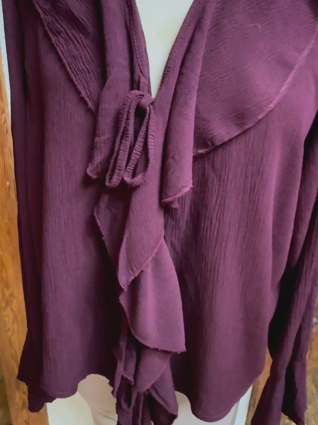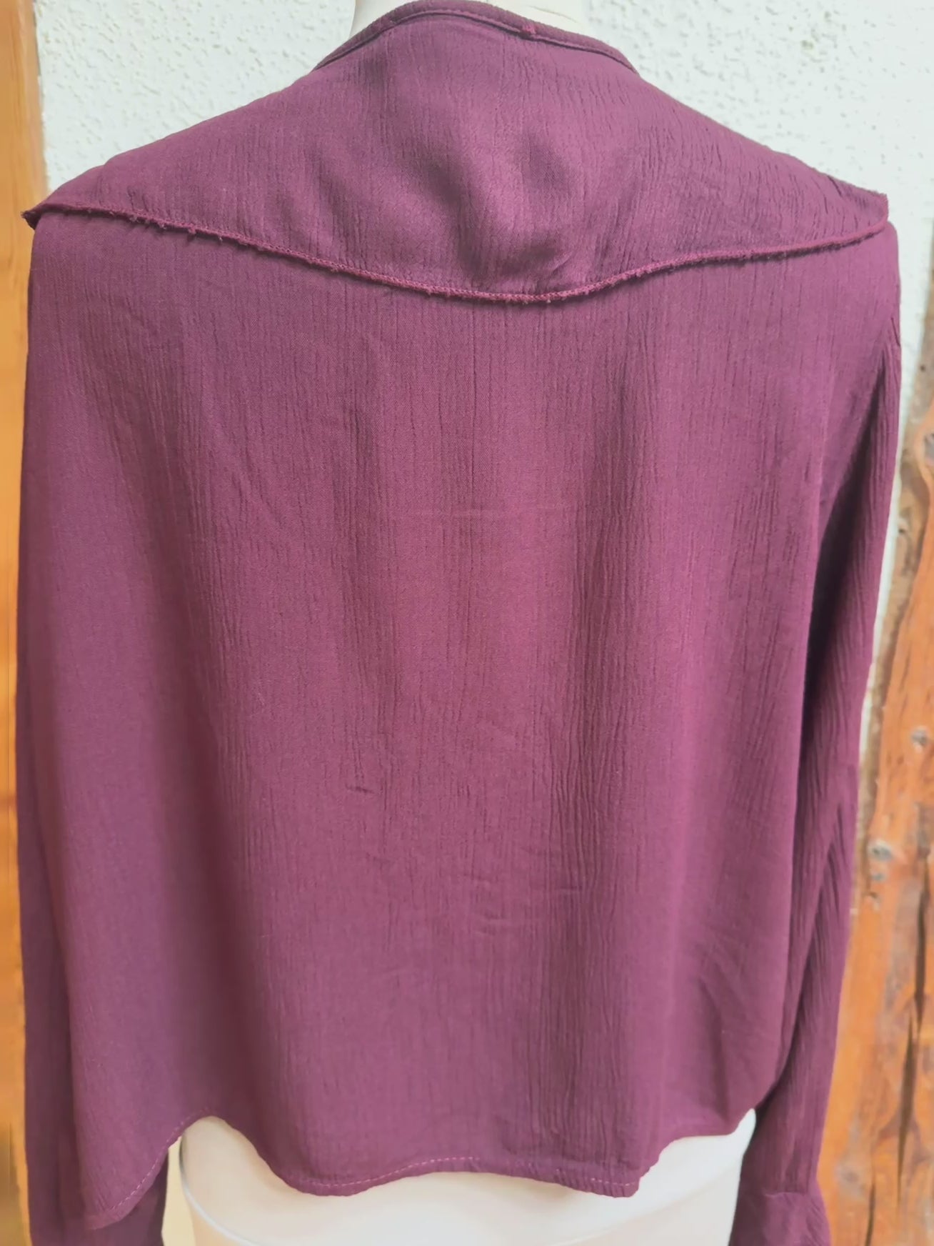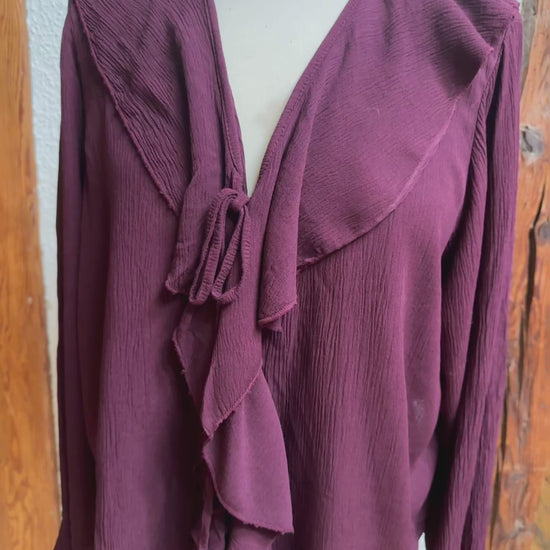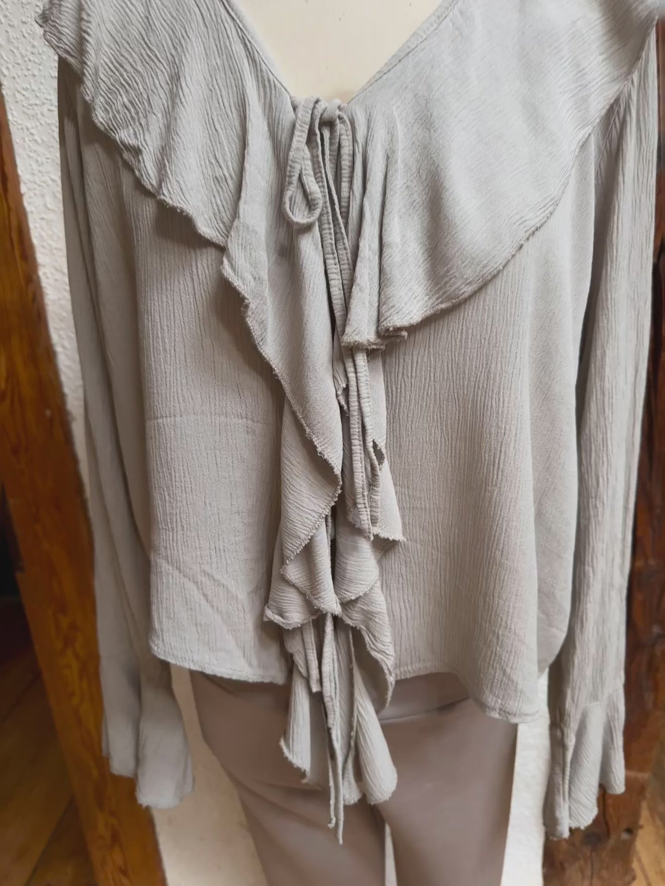 Super kombinierbar, vorne Rüschen, mit Bändern zum schließen, langer Ärmel, Material 100% Viscose, Onesize Gr 36 - Gr 40 Farben Beige und burgunder
