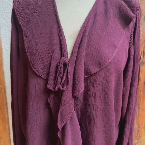 Rüschenbluse, leicht gecrasht, in beige und burgunder
