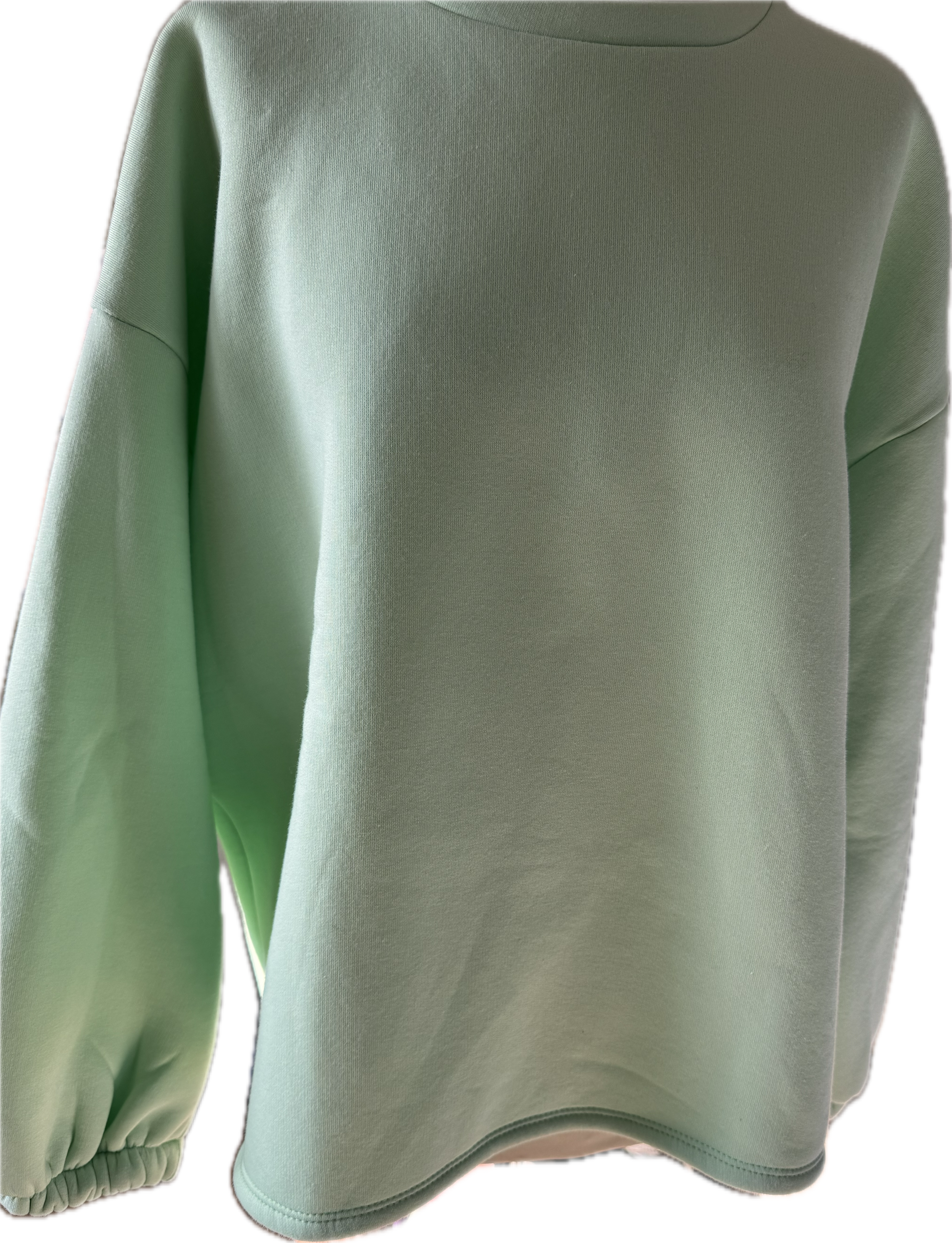 Sweatshirt in mintgrün, Schriftzug hinten in pinkrose