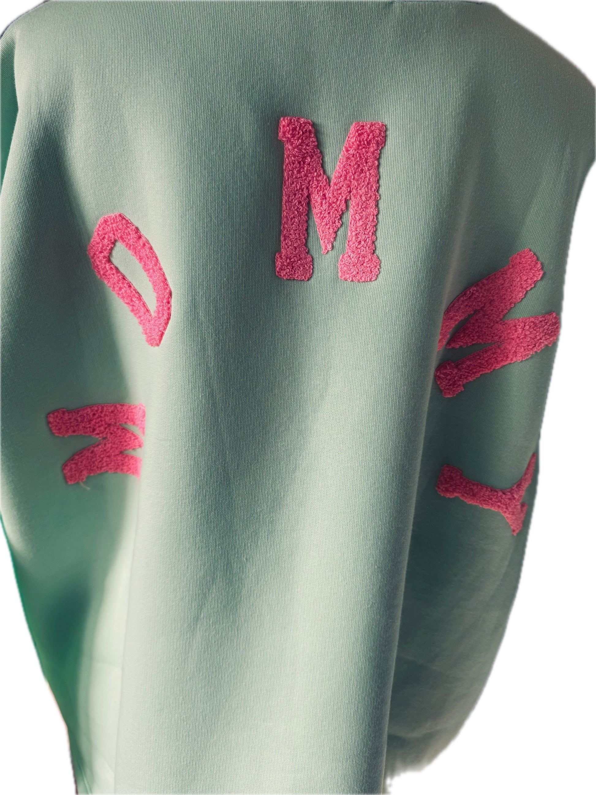 Rundhals, mint, aufgeschäumter Schriftzug in pinkrose "MOMMY", Onesize Gr 36 - Gr 42, Länge 65 cm und Brustweite 70 cm 65% Baumwolle und 35% Polyester, super kuschelig