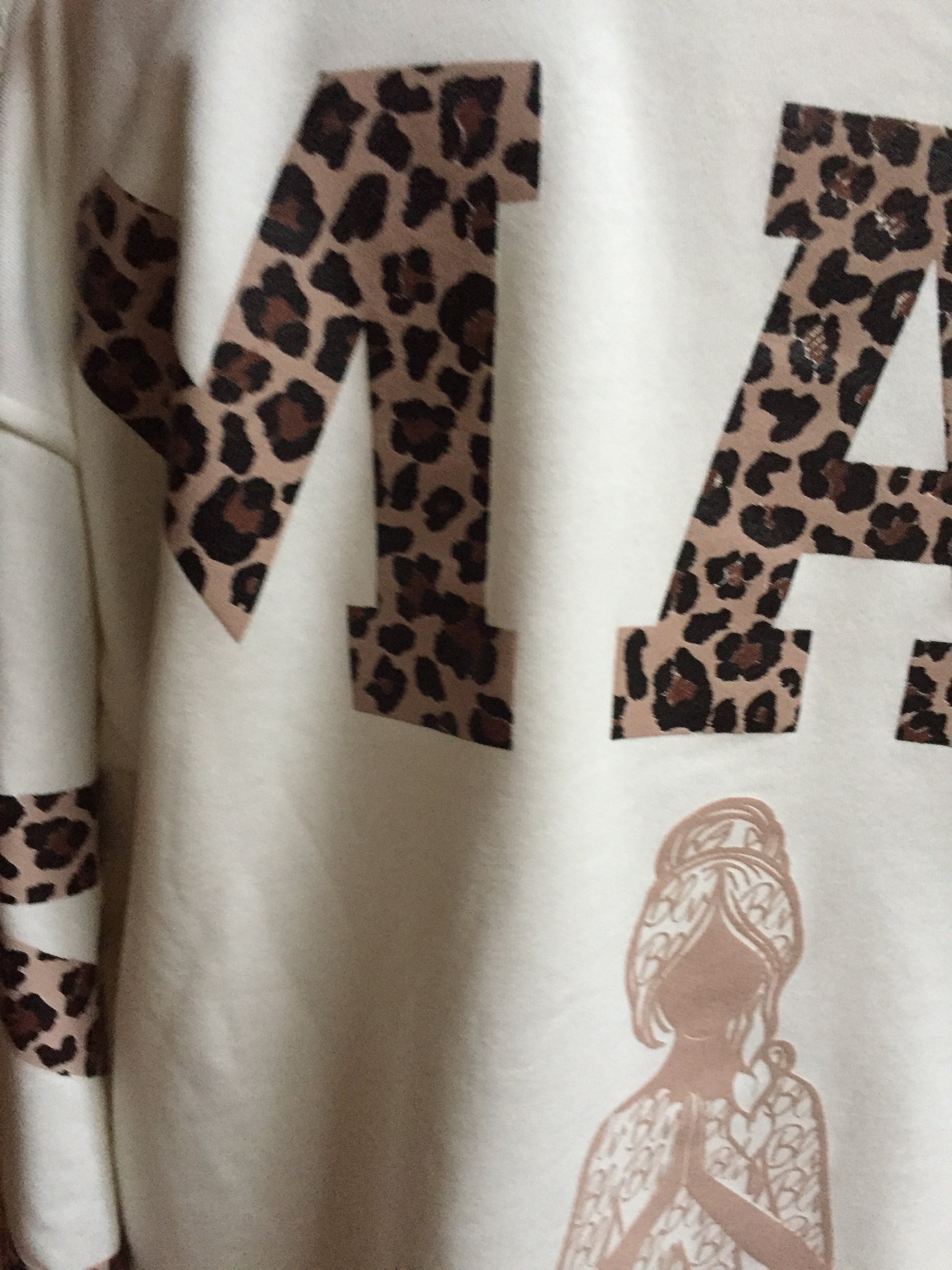 Weiß mit großem Animalprint hinten, kleiner Schriftzug in schoko vorn, 80% Baumwolle und 20% Polyester, Oversized Gr 36 - Gr 42/44