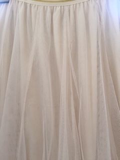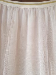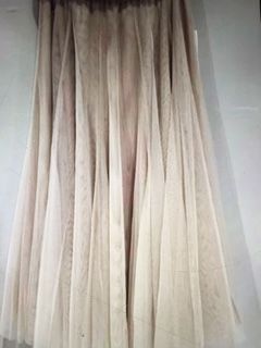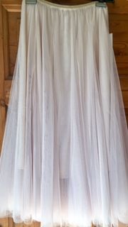 Langer mehrlagiger Tüllrock, weichfallend, Elastisches Bündchen mit goldenem Satinband,