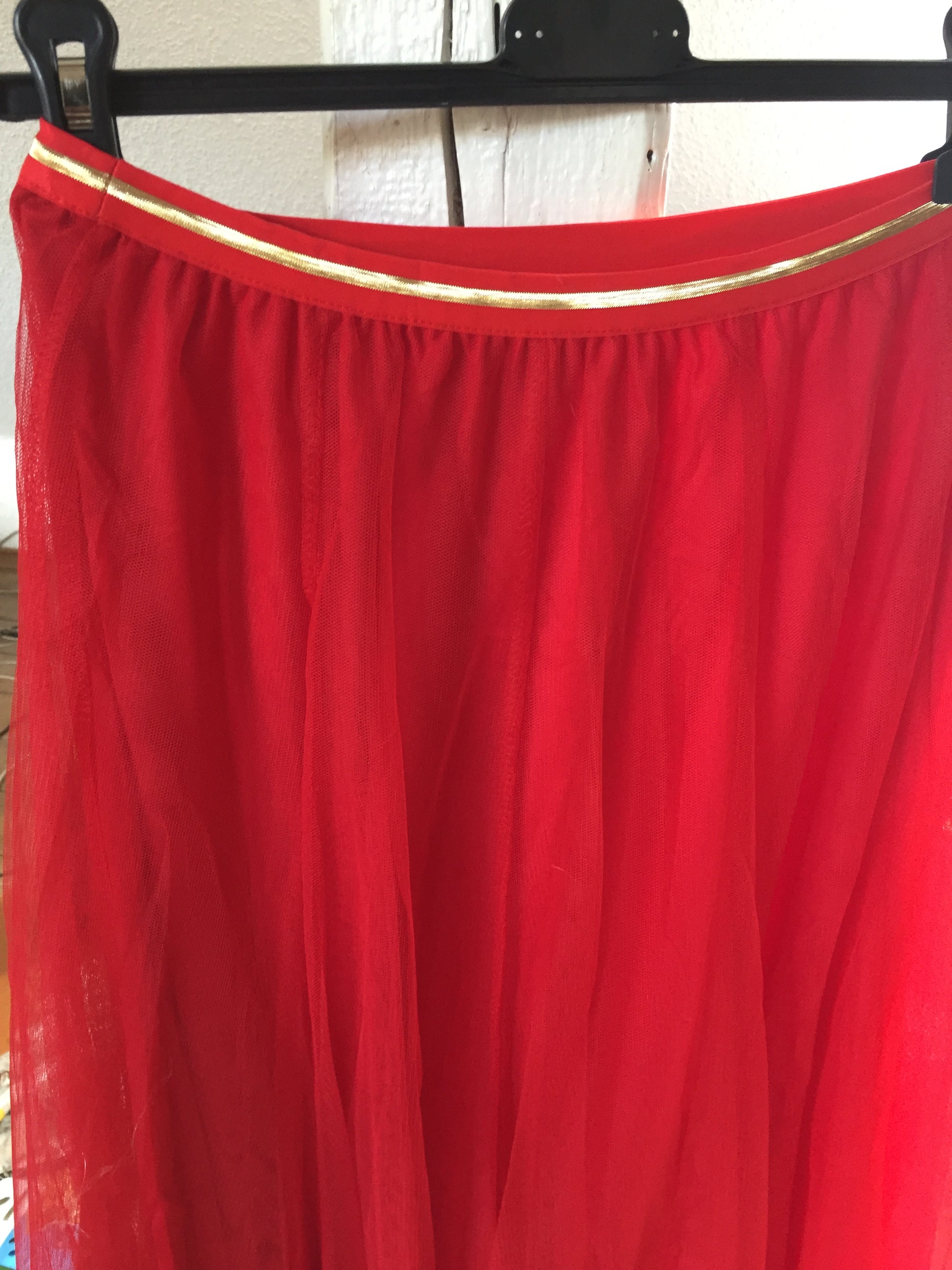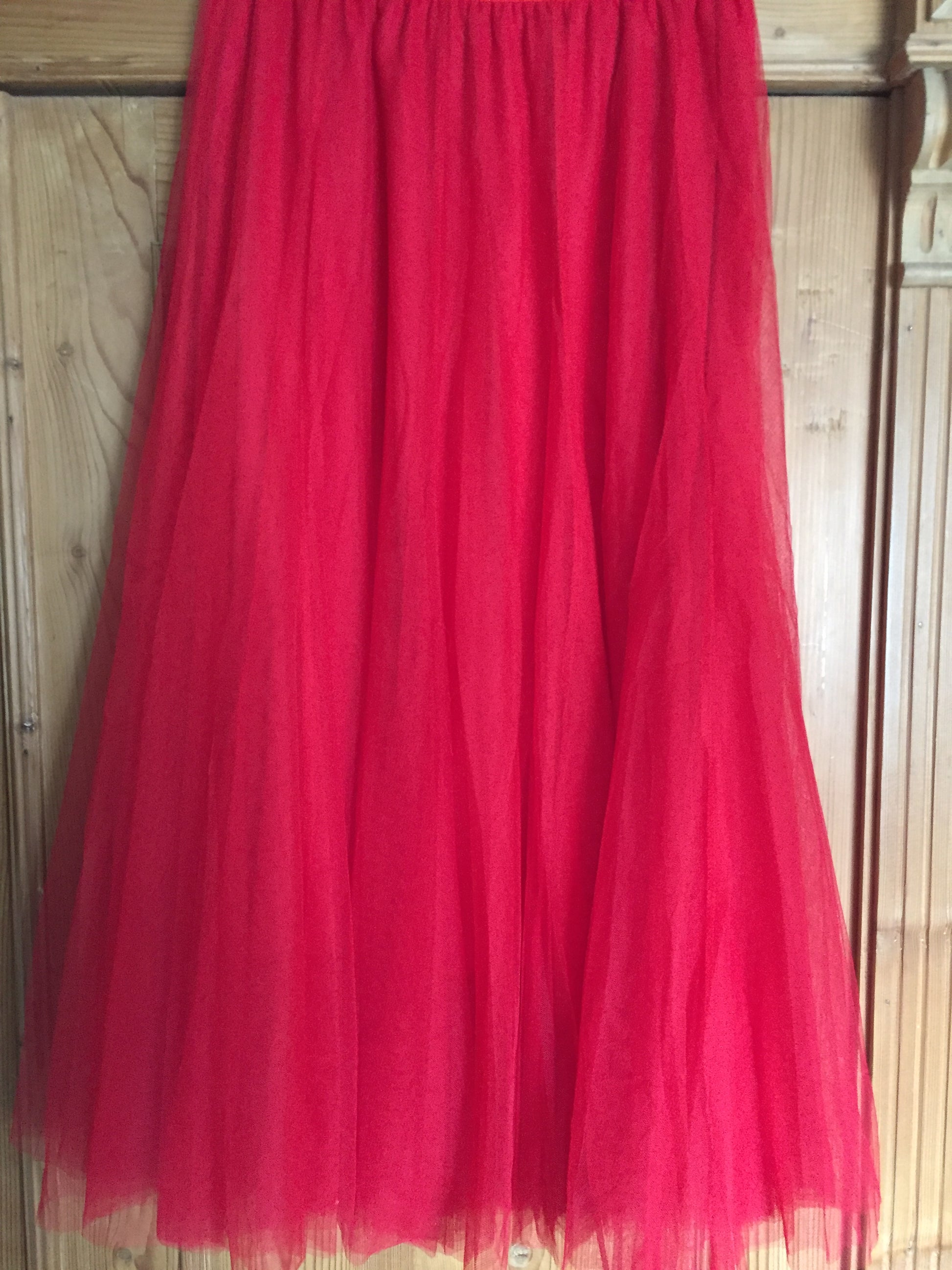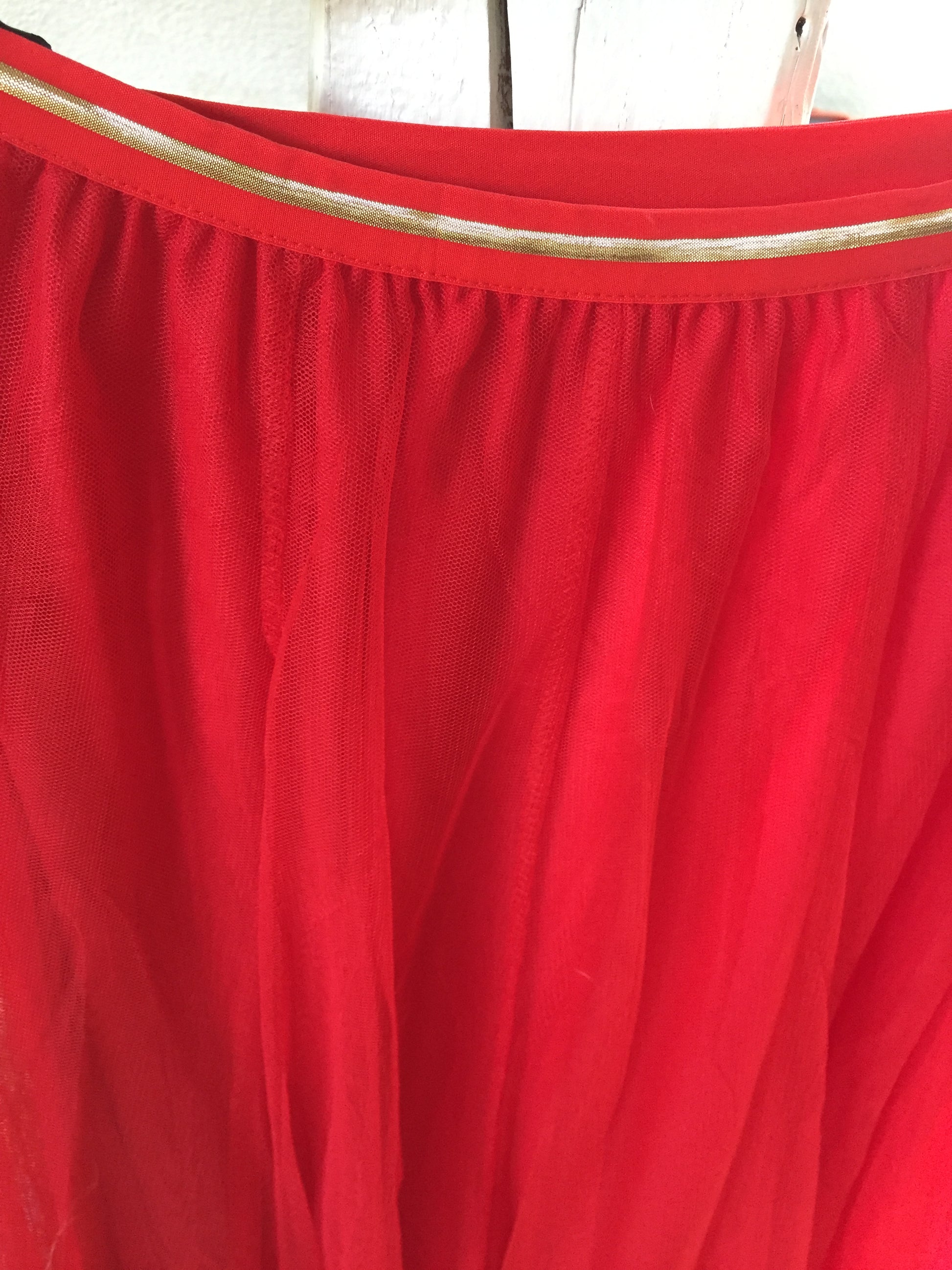 Tüllrock in kräftigem rot, schwarz, grau und altrose