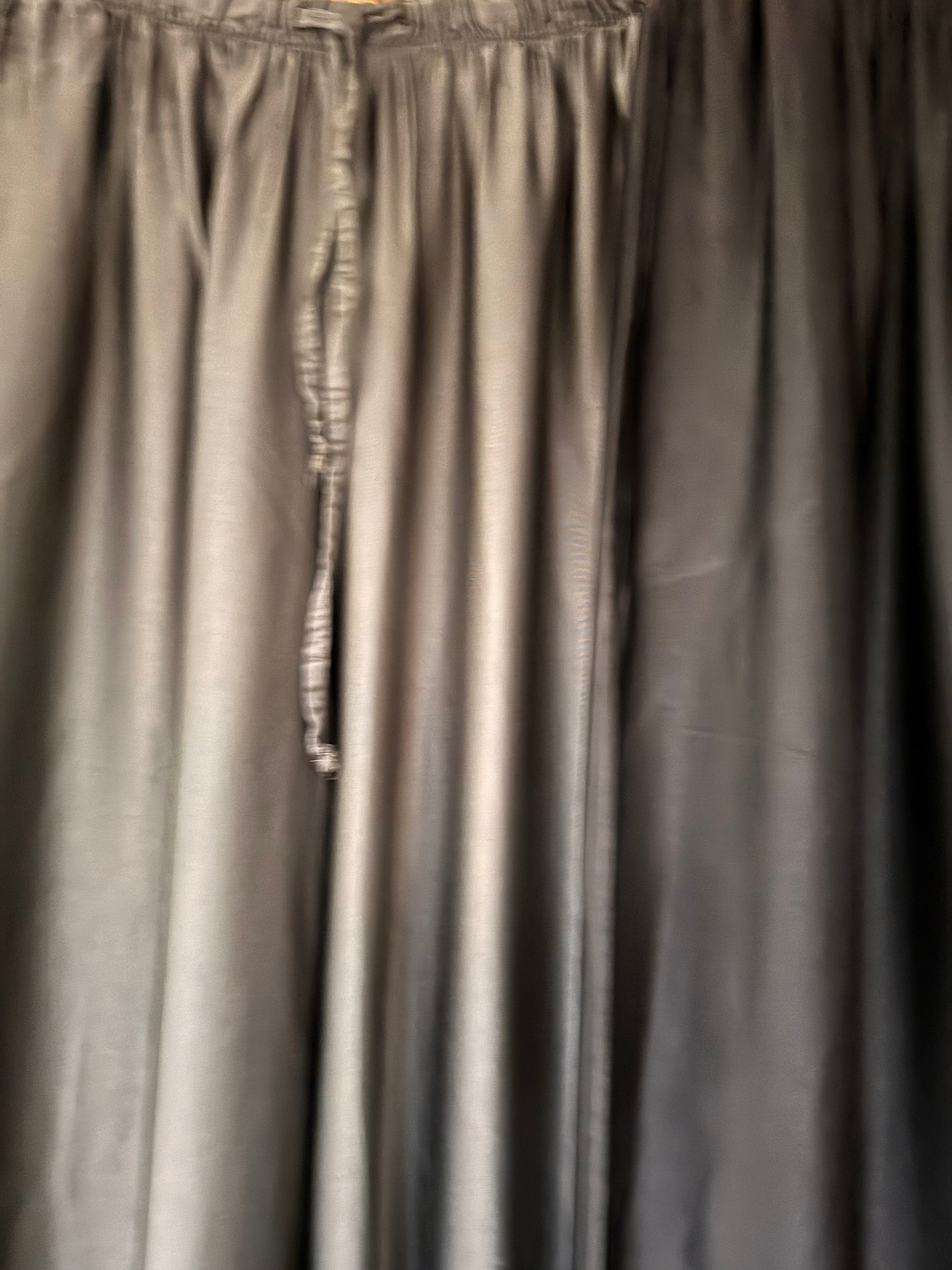 Weitgeschnittene Seidensatinhose in schoko und taupe